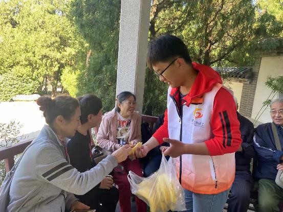 登山、观景两不误,大家拍照打卡,留下了很多美好的照片,社工一路上也为大家记录下了美好的时刻。走过梨园和文昌阁随后,我们来到了卿云轩,当社工询问重阳节的习俗有哪些时,老人们积极踊跃回答,除了社工已知的登高、祭祖、敬老、赏菊外,老人们还补充了插茱萸、喝菊花酒等。