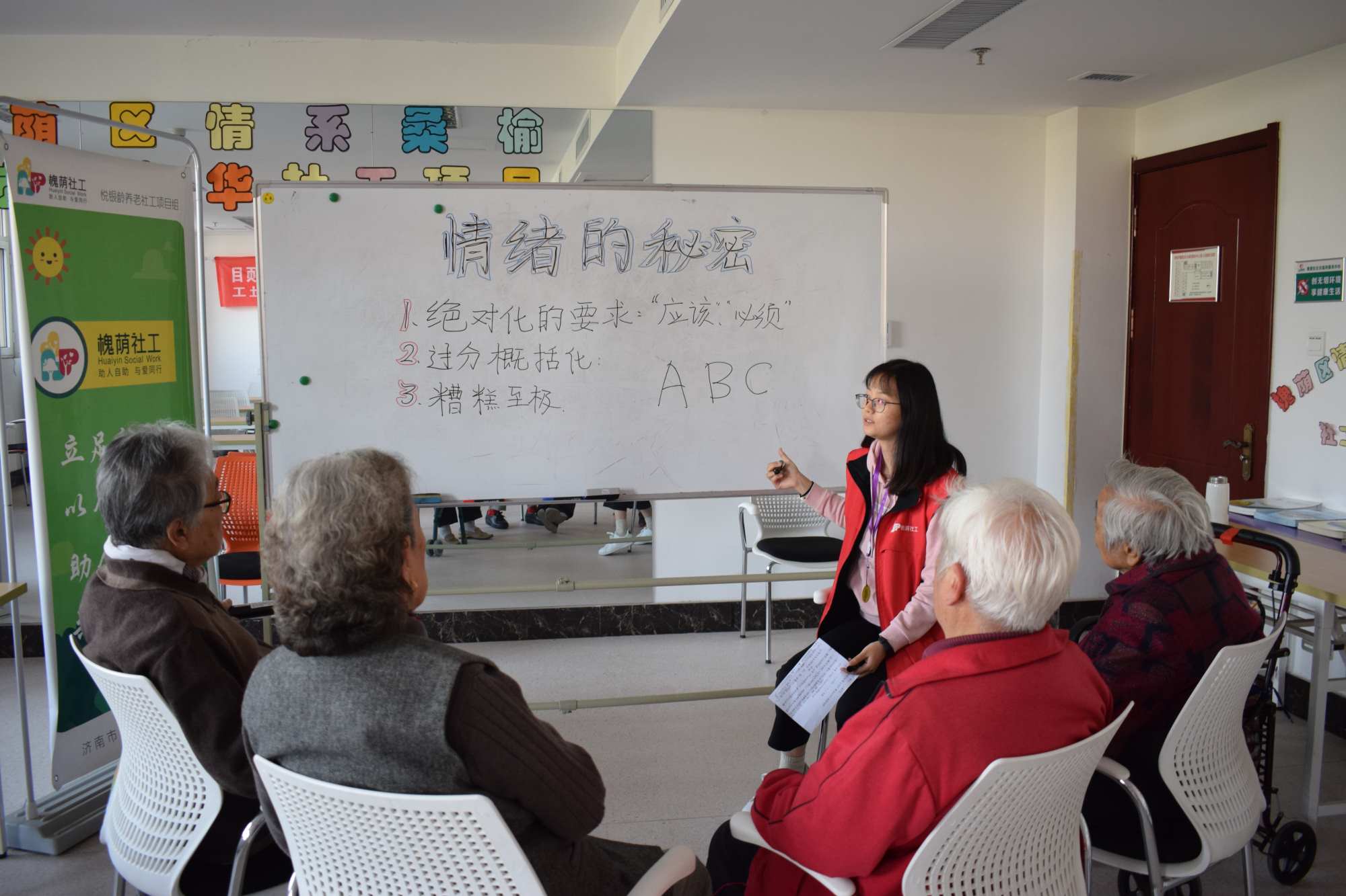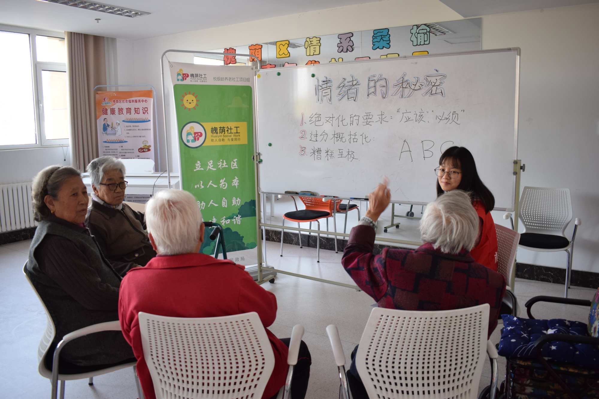 人是一种典型的情绪性动物,喜怒哀乐是人最基本的四种情绪,有的人不会控制自己的情绪,情绪爆发的时候既伤己又伤人。社工在和老人的相处中发现老人的情绪管理能力较差,多多少少会有生闷气或者言语上攻击人的现象。10月11日,众诚悦银龄养老社工项目组在福利中心三楼老年大学开展了从“心”开始人际沟通小组的第五节小组活动“情绪的秘密”。