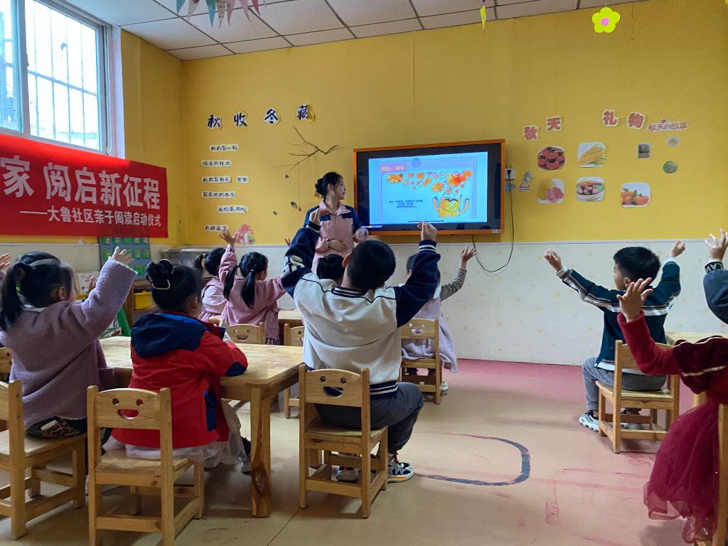 在28个“世界读书日”到来之际,为落实《关于开展“书香飘万家”全国家庭亲子阅读行动的实施意见》,推动大鲁社区儿童友好建设,激发儿童的阅读兴趣,营造积极向上的读书氛围。4月23日下午,药山街道社工站链接两名幼儿园老师,在大鲁社区开展“书香飘万家,阅启新征程”亲子阅读启动仪式。