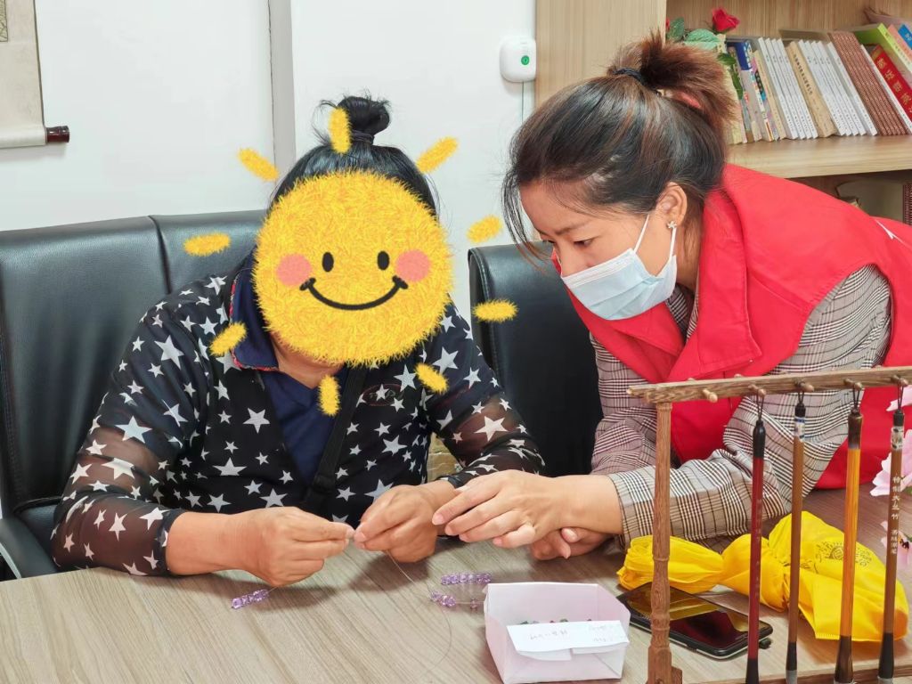 “小妮,你过来看看,我这条线是不是串错了,我脑子接着忘了,麻烦你再给我说一遍”“老师,这一步怎么弄来着”“哈哈哈,你串哪去了这是,串门去了吧”活动室里一片欢声笑语,现场氛围欢乐又温馨。