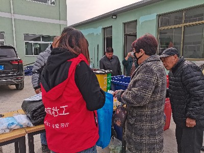 活动开始前,为了进一步促进活动目标的实现,社工积极参与协助石头村有害垃圾兑换活动,帮助前来兑换的村民合理分类,讲解垃圾分类的重要性,提高村民的环保意识。与此同时,社工也倡导村民通过“布袋代替塑料袋”,积极参与手工包DIY活动,为建设美丽乡村贡献一份力量。