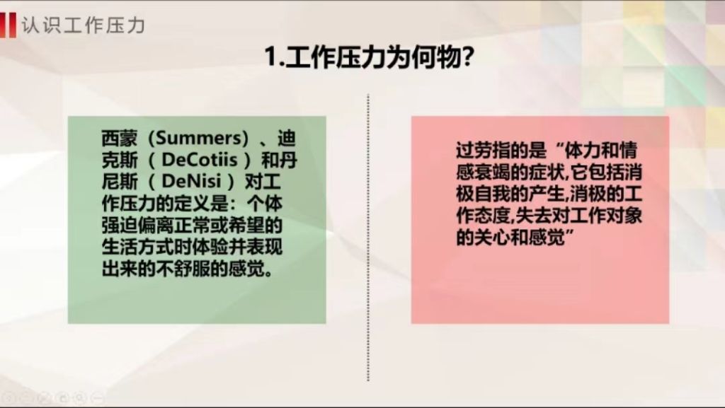 活动首先从看图猜成语的小游戏开始,使大家在舒适,放松的环境中,卸下紧张的状态,随后由驻站社工向大家介绍讲解,压力是如何产生的、压力如何有效缓解等理论知识,通过专业知识的学习,让大家理性看待压力,正确认识压力来源。并向大家讲解了一些科学的减压方法,如运动减压、倾诉减压、饮食减压等,最后通过观看温暖主仆情电影《桃姐》,引导大家正确面对压力,从紧张、烦闷的工作状态中抽离出来的方法,帮助大家学习心理减压自我调节,在有压力时,及时进行自我调适,做到合理解压,拥有健康愉快的生活。