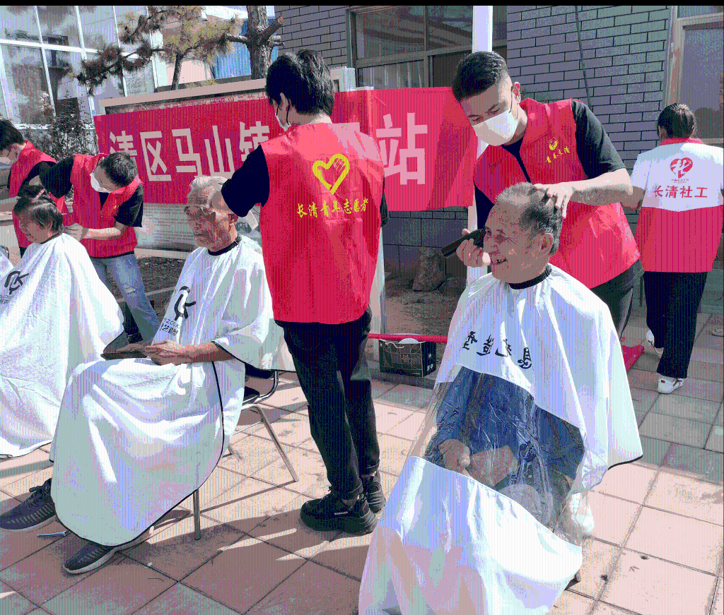 国庆节、重阳节来临之际,为弘扬尊老、敬老、爱老、助老的中华传统美德,传递一份温暖与关爱,马山镇社工站联合长清恩艺造型在长清区双泉庄村幸福苑开展“情暖重阳,与爱同行”公益义剪活动,因为交通不便,山区的老人理发要到很远的地方,听说了此次活动,老人们都非常高兴。