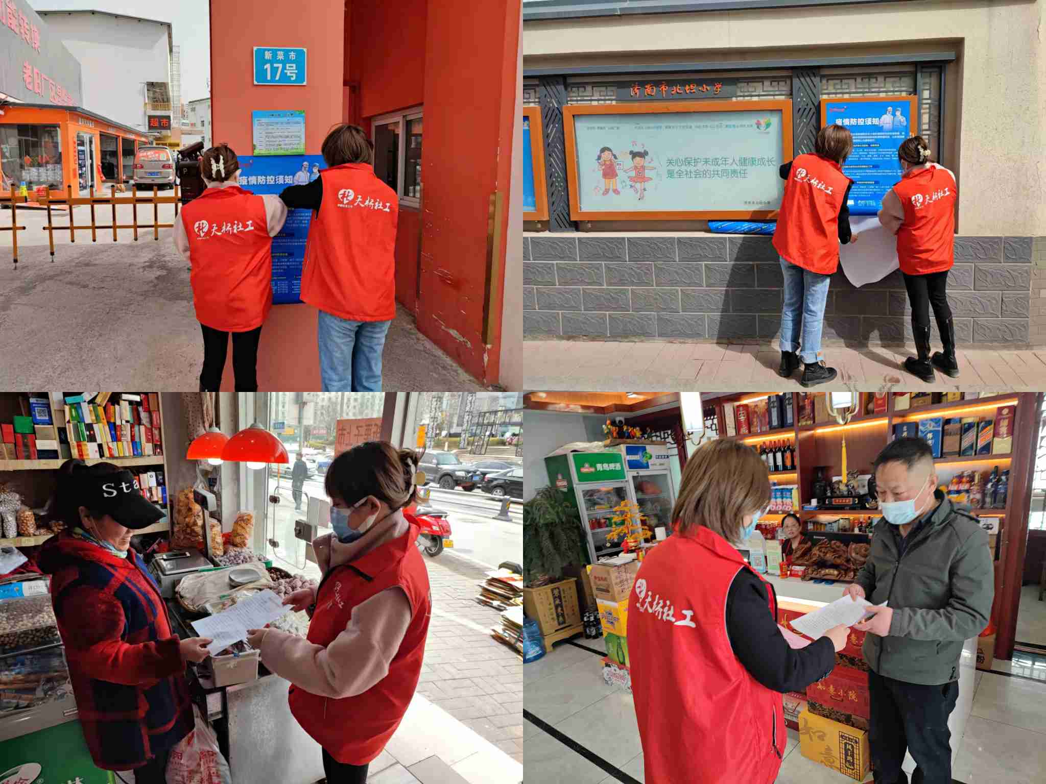 面对近期严峻复杂的疫情防控形势,北坦街道社工站社工及社区工作人员全员上阵,逐一走访辖区商户、企业、学校等重点场所,张贴防疫宣传海报,并对相关人员进行疫情防控宣传工作,着重强调当前疫情防控的严峻形势,敦促负责人进一步提高责任意识,严格落实疫情防控要求。
