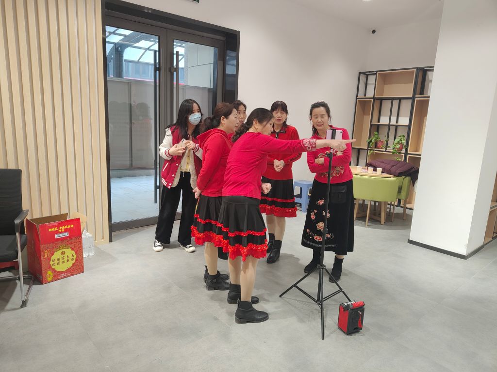 活动开始,社工精心选取拍摄取景地以及主题、背景音乐等,舞蹈队志愿者们换好充满节日氛围的服装,摆好机位,调好角度,欢乐喜庆的音乐响起,社区舞蹈队舞姿优美,生动活泼,演示出了传统文化的魅力,传递着祝福、欢乐、好运,记录下这美好的瞬间,经过近1个小时的努力,汇聚喜气、传递祝福的拜年视频摄完成。