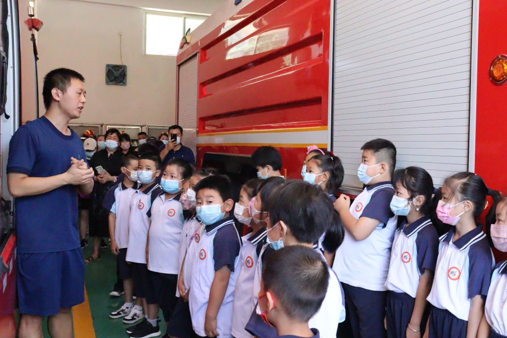 参观结束后,孩子们还沉浸在对消防员叔叔的崇拜中,消防员叔叔们已经站好队等待着和这群古灵精怪的“消防探索家”一起拍合影留念了。微风轻吹,阳光明媚,在气势威武的消防车前,孩子们和心中的英雄留下了美好的纪念。