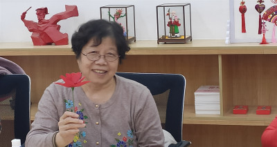 活动在成员间的亲切问候与爽朗的笑声中拉开帷幕。随后,社工与组员们开始了小红花的制作。在制作过程中,针对新加入的成员社工在引导过程中对此重点帮扶,鼓励组员互帮互助,建立良好的人际关系。“你可以在纸上画个花瓣形状,这样裁剪起来更方便。”“你在套网的时候尽量用手勒紧一些”......小组成员们有说有笑,聊一聊手工的内容、生活中的趣事,氛围得到很好的活跃。活动最后,小组成员看着倾尽全心的劳动成果,由最初的一张纸、一条丝网最终变成了一件件艺术品,每位成员都笑的合不拢嘴。在赠送他人的过程中,小组成员满心欢喜的介绍着自己的创作灵感,充分展示了个人的动手能力。最后,社工向小组成员确定了阳光手工小组的活动时间,带领小组成员再次澄清小组目标、明确小组规范,并表明了社工在阳光手工小组里面扮演的角色。