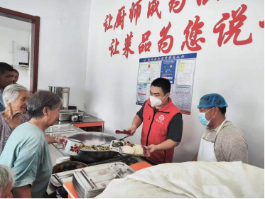 在志愿者们的忙碌下,饭菜香很快扑鼻而来,志愿者们搀扶老人在饭桌前坐下,帮老人盛饭,陪老人用餐。一顿爱心餐虽小,但是让孙婆婆感受到了社会的温暖,切身体会了社会大家庭对老人的关爱。