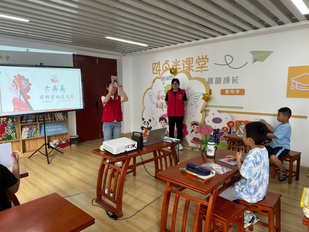 活动伊始,七贤街道社工站的专业社工以严谨而生动的讲解,为孩子们揭开京剧文化的神秘面纱,深入浅出地介绍了京剧的历史沿革、角色分类及脸谱色彩所蕴含的丰富象征意义。红色,象征着忠勇无畏;黑色,则代表着刚正不阿。每一种色彩背后,都承载着深厚的历史文化积淀与人物性格特征,让孩子们在聆听中感受到京剧艺术的博大精深。