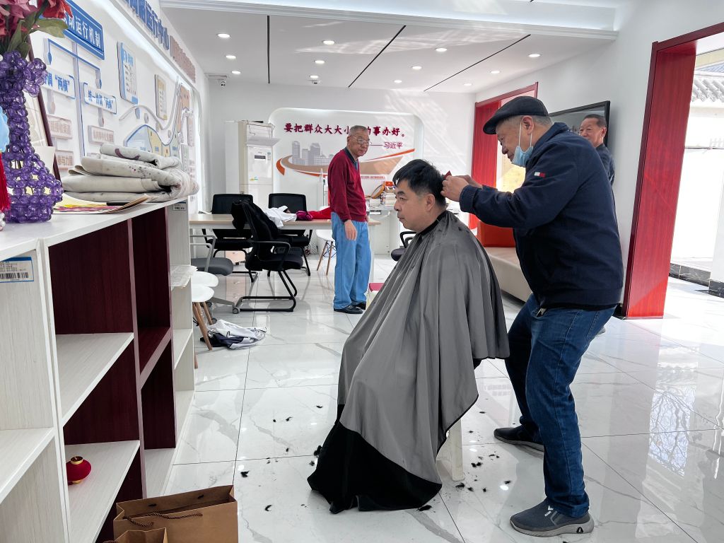 活动现场,理发师热情地与居民交流,根据每个人的需求和喜好设计发型。一把把剪刀上下飞舞,一推一剪间,居民们原本杂乱的头发变得整齐利落,精神面貌焕然一新。居民们一边享受着贴心的服务,一边唠着家常,现场洋溢着温馨欢乐的氛围。