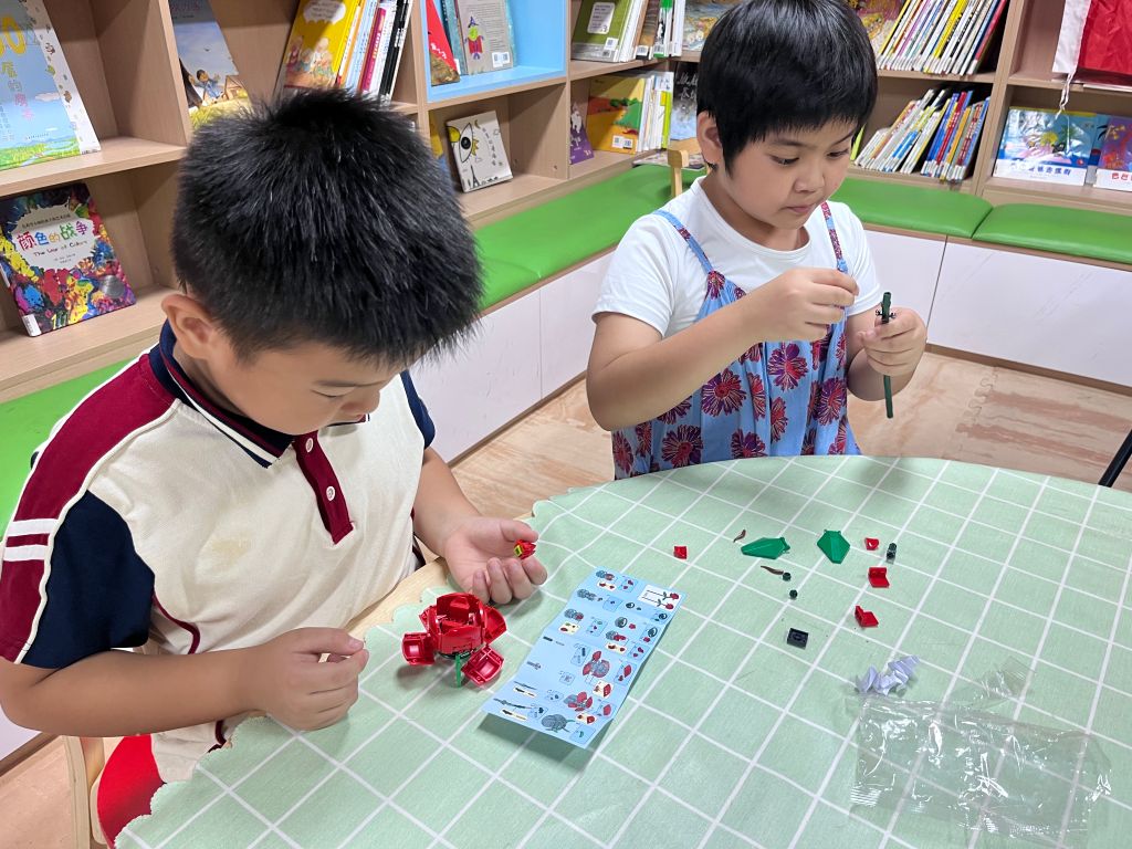 经过之前的积木拼装,孩子们已经熟能生巧,年纪最小的孩子也能够熟练的看懂积木图纸,搭建积木的时间大大缩减,有的孩子甚至已经能够个人单独完成积木的快速组装,逻辑思维能力获得了很大的提升。