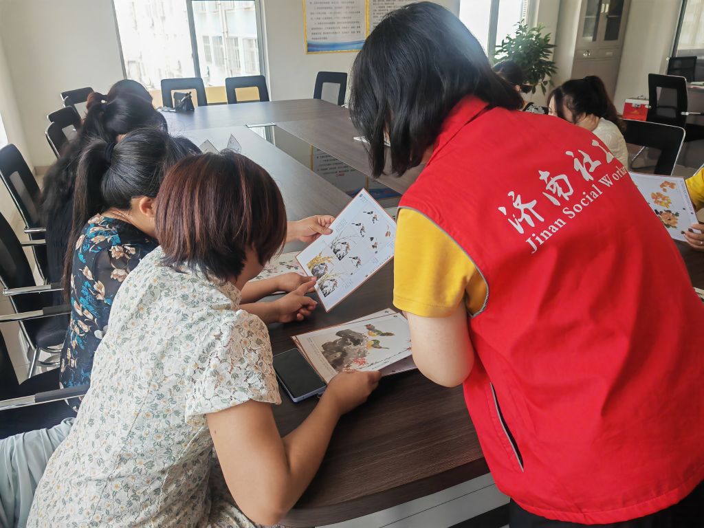 活动开始,社工首先为大家展示了几幅名家著作让全职妈妈们自行观察和欣赏,并鼓励大家讨论交流,很快大家你一言我一语纷纷表达自己对作品的理解,正所谓一千个人眼中有一千个哈姆雷特,每个人的理解虽有不同,但是大家对艺术的渴望是相同的。大家讨论结束后,社工从作品的创作背景、绘画技巧、情感表达等方面为全职妈妈们进行了专业讲解,从来没有接触过此类课程的全职妈妈们仿佛又找回了闪闪发光的自己,在艺术的世界里疗愈疲惫的身心。在轻松活跃的气氛中,大家纷纷表达对下次活动的期待,全职妈妈李女士表示:很期待在以后的日子里可以继续跟社工一起提升艺术素养,与小伙伴们分享生活中的喜乐,放松自己,丰富枯燥乏味的生活。