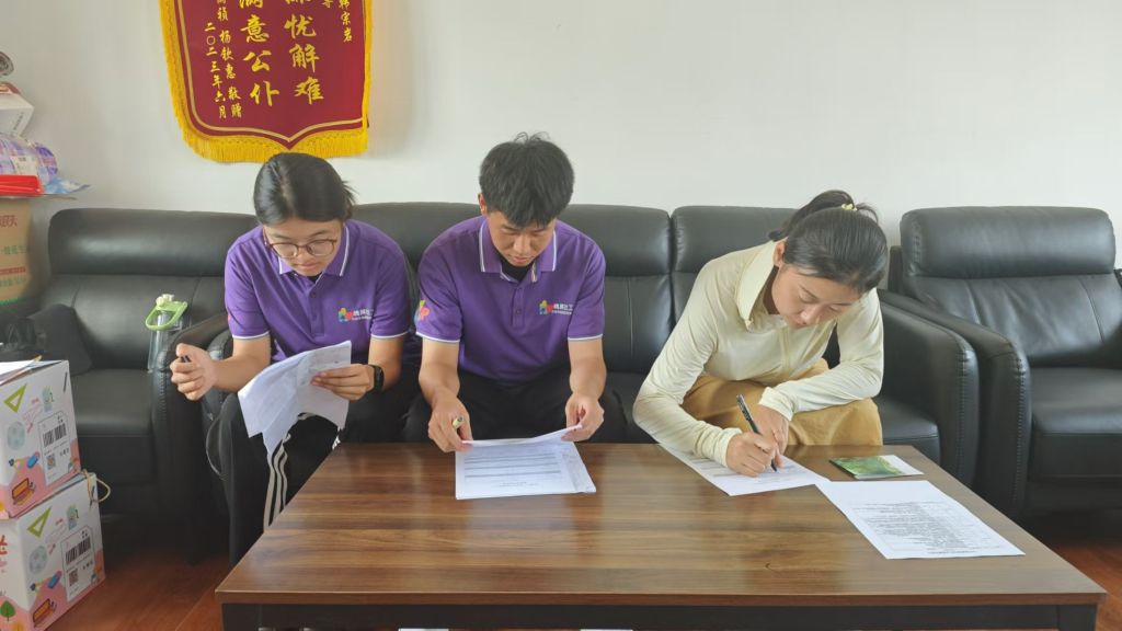 在入户走访当天,社工和志愿者先到达村委会,与村里的儿童主任初步了解困境儿童的家庭基本情况,依据儿童及其家庭特点修改访谈提纲,使其更具有针对性,充分照顾儿童情绪,更有针对性地了解困境儿童的需求,在送关爱的同时也为社工站后期开展困境儿童相关服务打下基础。