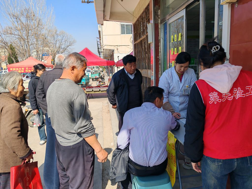 活动当天,王庄集市热闹非凡。社工站积极链接漱玉平民大药房在王庄集市入口处设立了健康检测点,为过往村民免费测量血压、血糖等,耐心解答村民关于健康方面的疑问,并结合季节特点和常见疾病,为大家普及健康知识,引导村民树立正确的健康观念,养成良好的生活习惯。不少村民在接受检测和咨询后,纷纷表示受益匪浅,对健康生活有了更深入的认识。
