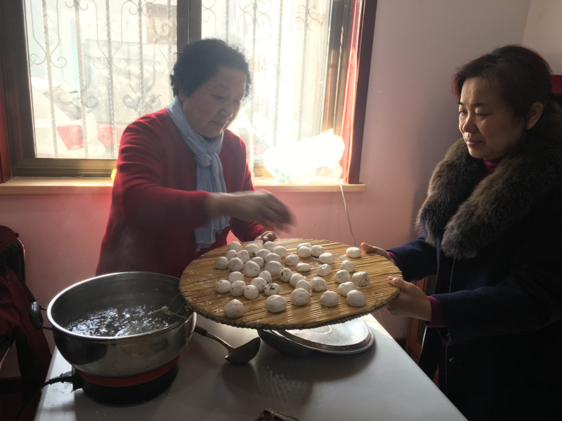 一进居委会,走廊两侧就挂满了谜语,现场一片热闹景象,大家你一言、我一语地互相讨论和猜测,每个人脸上都洋溢着欢乐、喜庆的笑容。在猜谜中感受浓浓的中国传统节日气氛,增进邻里感情。走进活动室,老人们和小朋友一起撸起袖子,搓元宵、放馅料,"还是自个儿包元宵更像过节""是啊是啊",大家有说有笑的进行着。随着一阵阵香气扑鼻而来,大家拿着备好的碗坐好,品尝着热气腾腾的元宵,开心的合不拢嘴。