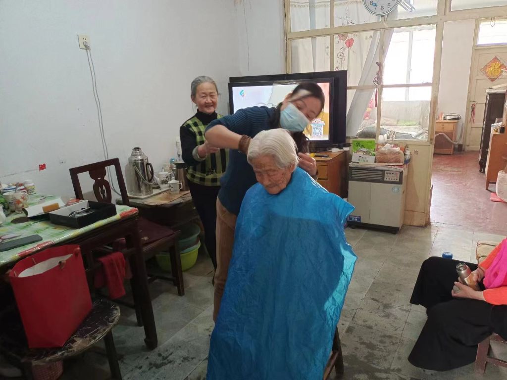 后来,我跟着站长去走访,并链接到了云天使护理院为昆仑街社区的老人们上门理发,老奶奶年岁渐大,行动不便,听力也有障碍,但看到我们上门开心得不行,理发过程中不停说“幸亏有你们”,她对社工自然展现的信任与喜爱,十分让我动容,从这份服务中感受到温暖的,又何止是老人。