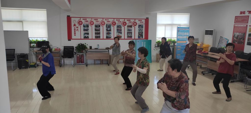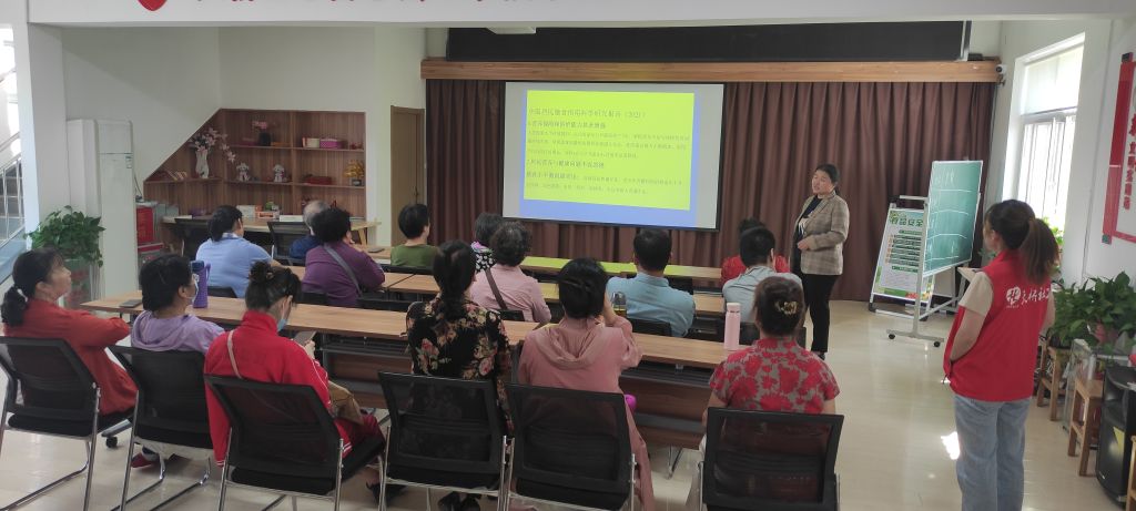 为提升老年居民的健康意识和防御疾病的能力,社工站特设计了五禽戏、养生讲座、膳食讲座等活动,让老年人全方面的走向健康生活。首先是五禽戏,邀请到的老师先是带领老年朋友们热身锻炼,然后按照虎戏、鹿戏、熊戏、猿戏和鸟戏顺序依次教给大家,社工也加入其中,不一会大家都感到微微发汗、舒筋活血。除了实践,还需要理论的支撑,社工分别链接专业讲师,先后两天为老年人带来不同主题的健康讲座。膳食讲座专场,讲师告诫大家少盐少油,控糖限酒,多吃蔬菜、奶类、豆类,适量吃鱼、禽、蛋、瘦肉,食物多样、合理膳食。养生讲座专场,讲师重点讲了饮水的重要性和时间段等等,就连喝水都隐藏着大大的学问。几场健康主题活动深受居民欢迎,老人们纷纷表示从中懂得了护理、养生、锻炼的重要性。