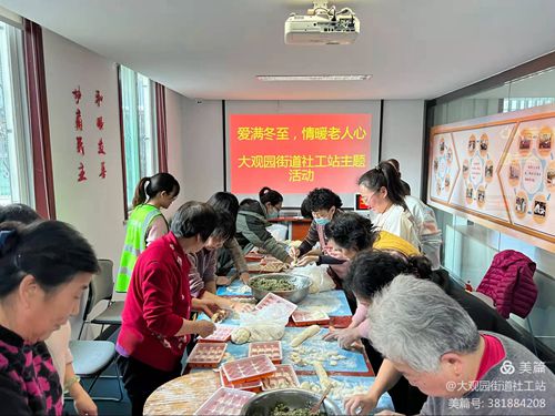 冬至是中国的传统节日,民间自古以来就有“冬至大如年”的习俗。大观园街道社工站链接天工日间照料中心开展“爱满冬至,情暖老人心”冬至包饺子主题活动,推动社区居民邻里互助,让社区老人感受冬日温暖的同时,传承中华民族的传统习俗、品味民俗节日。