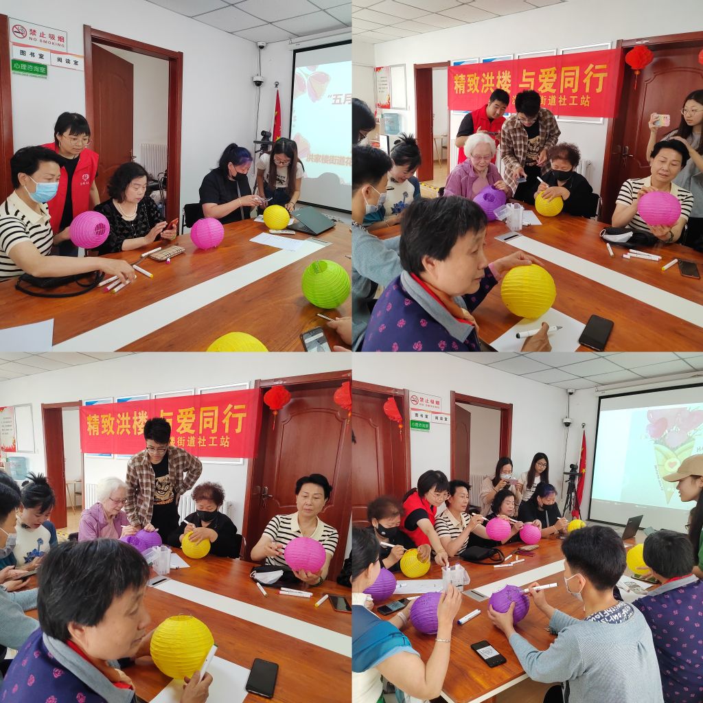 在母亲节到来之际,为丰富辖区女性朋友的文化生活,洪家楼街道社工站联合花园北区、洪家楼街道社区社会组织联合会共同开展“五月康乃馨,爱心献母亲”手工灯笼制作活动。