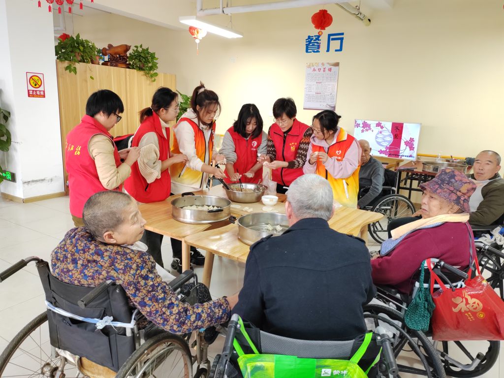 “冬至天日寒,水饺暖人心”社工、志愿者、社区工作人员与三真护理院的老人们、残疾人们一起包水饺,活动现场气氛欢快融洽,洋溢着满满的“家”的味道。