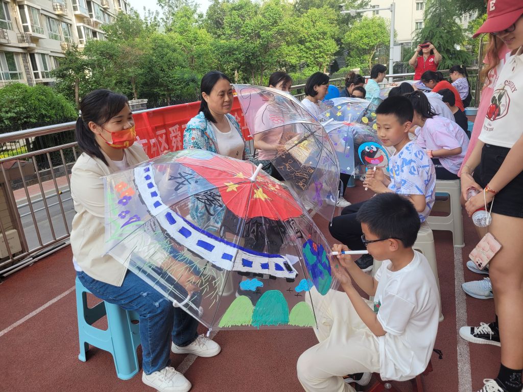 雨伞经过孩子们的调色、布局、勾线、上色……一步步地绘制出一幅幅好看的图画,有画地球、中国国旗、神州系列火箭,和谐号、宇航员的,也有画国宝熊猫、皮卡丘、星黛露、机器猫、小星星,笑脸的,还有画冰激凌、西瓜、花朵、月亮的,一把把精美的雨伞就诞生了。活动让孩子们体验动手实践的乐趣,同时激发了孩子们的艺术创造力,增强了亲子之间的感情交流。