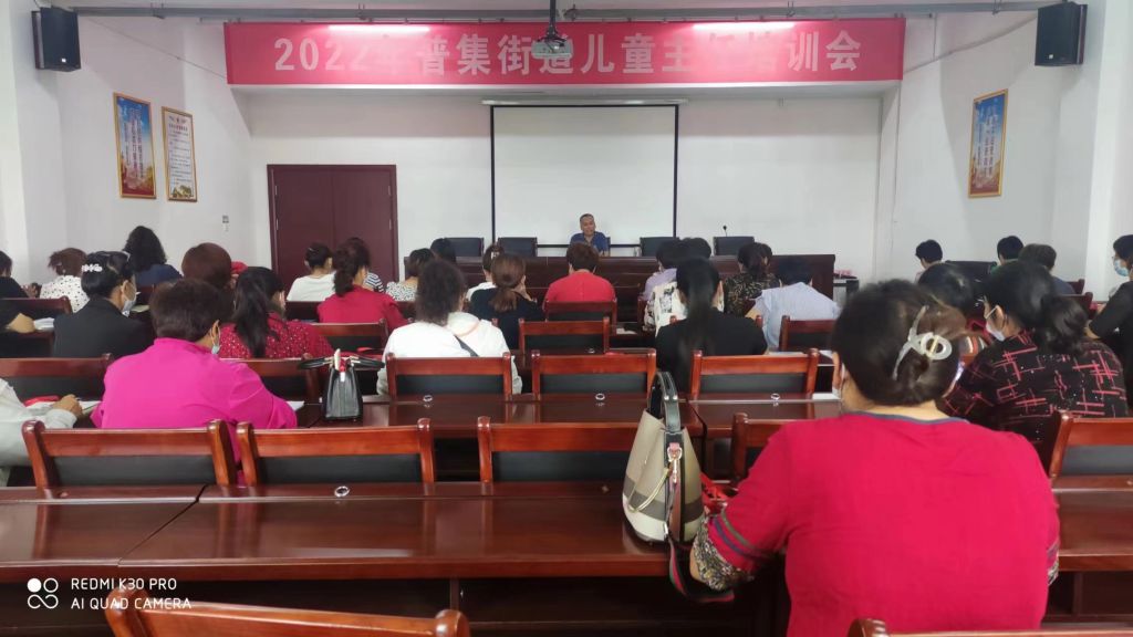 在整合社区资源过程中,社工发现普集街道47个行政村均设有儿童主任,且儿童主任对本村困境儿童信息掌握全面,能及时发现问题,为有需要的困境儿童及家庭提供亟需,精准的帮助与服务。为进一步提升守护儿童的专业化力量,普集社工站于2022年7月20日,在普集街道办党群服务中心二楼会议室主持召开儿童主任培训会议,为儿童主任赋能充电。