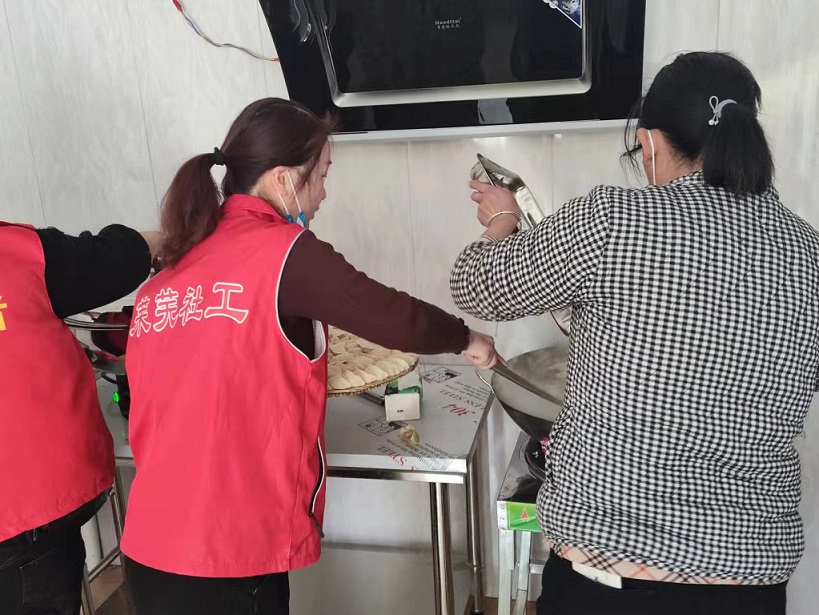 尊老敬老是弘扬中华民族的一种传统美德,为进一步贴近民众,增加社工站与老年人的互动交流方式,2022年2月28日,雪野街道社工站通过与李家庄村委会的沟通,在幸福院开业之际来到了村内,共同参与为老人包水饺,助餐送餐的幸福院活动。