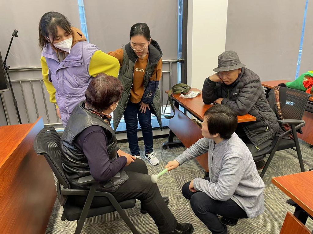 在讲座互动交流环节,郭老师详细回答了大家提出的问题,并给针对个别案例进行现场治疗和演示,给出有针对性的建议和解决方案。社工及志愿者根据专家指导也对有需求的居民进行了拍打治疗,现场居民积极参与互动,气氛活跃,反馈良好。
