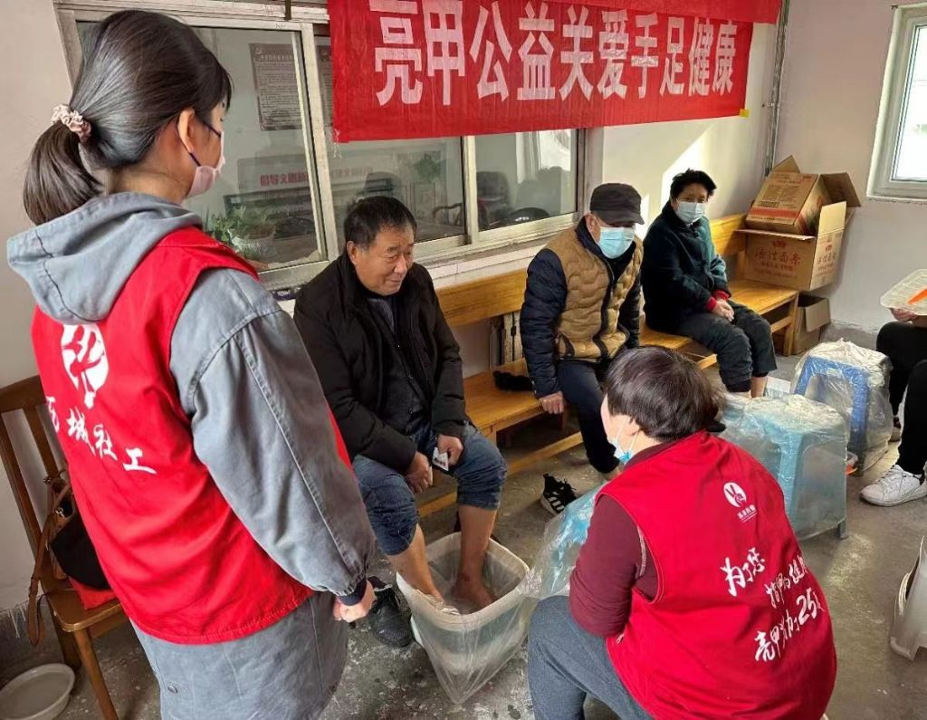 为了关爱中老年人脚部健康,弘扬“爱老”精神,东风街道社工站邀请亮甲厂家,于11月16日在世纪园社区举行“为爱修行,让爱脚踏实地”活动。修脚公益活动旨在为社区内的老年人提供免费修脚服务,以改善他们的生活质量。