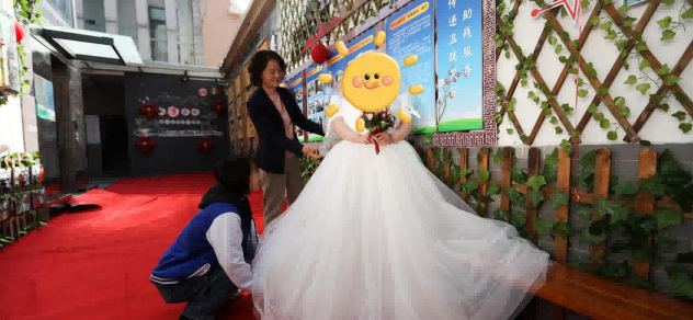 “社会慈善资源卷联型”联动模式,更加创新设计社区治理和服务项目。本次活动的开展,青合站以“小院会议”的探讨内容为前提,与街道公益慈善资源联动,与社区工作人员、慈善资源方、社区志愿者携手,共同参与提供婚纱、活动的场地布置等工作。伴着一缕缕阳光散在“和合小院”中,温馨浪漫的“红毯”现场也渐渐有了雏形,参与活动的服务对象身披洁白的婚纱,缓缓走出,喜悦之情溢于言表。“感谢你们,真的很感谢”“这是我第一次穿婚纱,我已经不知道怎么形容现在的心情”,笑容掺杂着眼泪,感谢的言语中带着感动的哽咽。