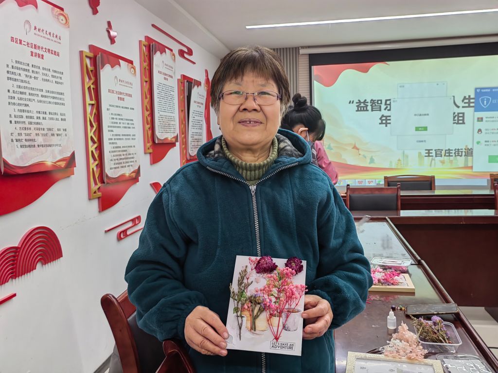 为丰富老年人的精神文化生活,锻炼他们的动手能力,帮助老年群体拓展更多的兴趣爱好,11月15日,王官庄街道社工站在四区第二社区开展“益智乐园 岁月人生”——老年人支持小组第五节DIY干花相框制作活动。