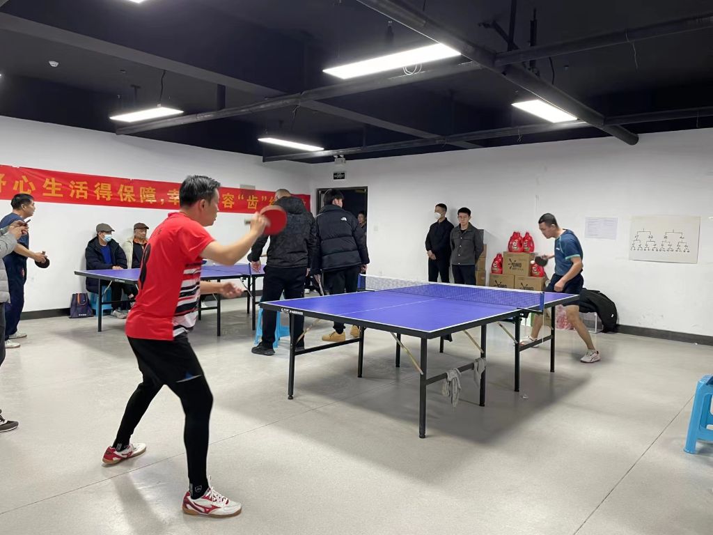 比赛在小小乒乓球的上下翻飞中拉开精彩的帷幕,大家热情高涨,本着“友谊第一、比赛第二”的原则。参赛选手们灵活地挥动着球拍,接发球抢攻、滑步击球、近网短球、正反手侧旋球,时刻判断球速、方向并击球,闪转腾挪间,一系列动作行云流水,小小的乒乓球上下翻飞,在球桌上轮转着。比赛现场热火朝天,比赛氛围紧张而激烈,不时传来呐喊声、欢笑声,整个活动洋溢着热闹欢乐的气氛。