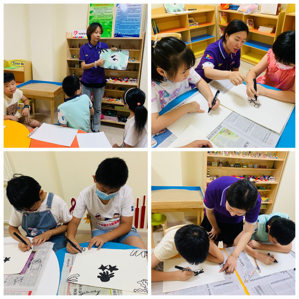 随后,社工详细讲解了艺术创作“海底倒影”的绘制过程。在社工的鼓励下,小组成员们自由发挥,将自己喜欢的海底生物及各种海草绘制在画纸上,一幅幅小朋友内心世界的海底倒影呈现了出来。