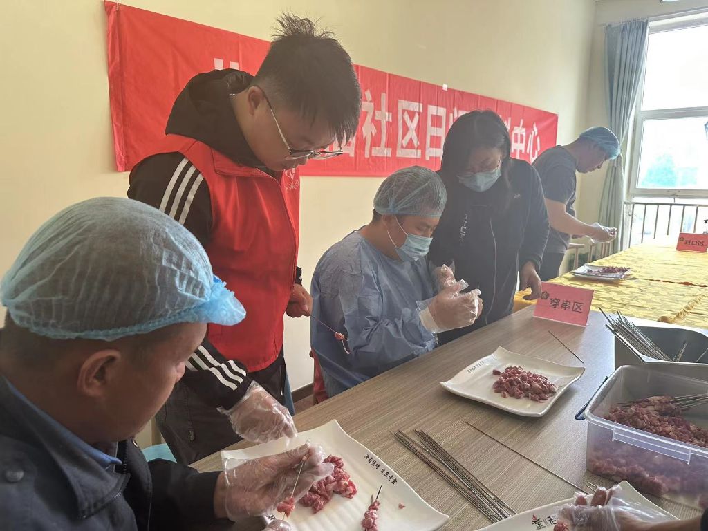 因近期淄博烧烤爆火出圈,此次残疾人技能培训邀请到了济南老金烧烤的师傅讲解穿羊肉串的培训课程。师傅有针对性的讲解了羊肉的挑选和穿羊肉串的方法、技巧和注意事项。在动手制作羊肉串环节,师傅耐心的指导残疾人朋友们,他们谨记师傅讲解时提到的注意事项,挑选肥瘦相间的肉穿到铁签上,一根铁签上穿3-4块肉,穿好后用手整理一下,一根羊肉串就穿好了。残疾人朋友们耐心细致地穿起来,没过多久,羊肉串就整整齐齐的摆在盘子里了,看着自己穿好的羊肉串他们也露出了笑容。