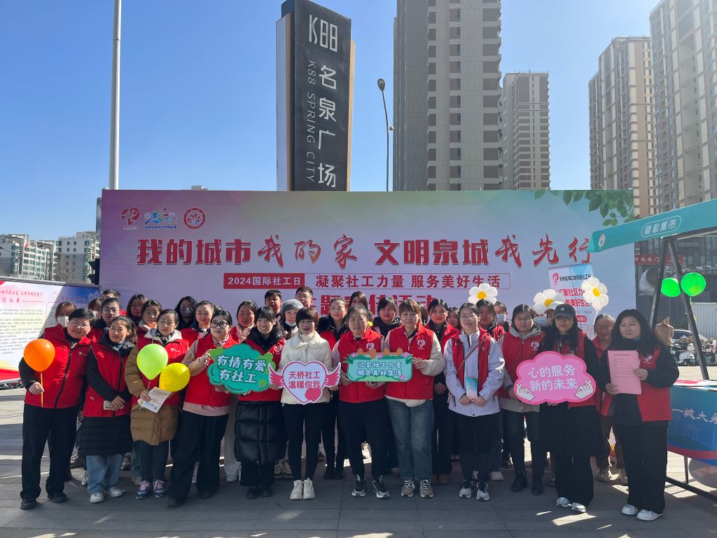 “春种一粒粟,秋收万颗子。”在这个播种希望的季节,广大社工迎来了第 18 个国际社工日,为弘扬社会工作专业精神,提高社会工作认知度和影响力,展示天桥社工发展成果,3月19日上午,在区民政局的指导下,总站及各街道社工站在K88名泉广场,动员辖区内社会组织、志愿者、公益企业资源等,以多样化的服务形式,围绕“汇聚社工力量,服务美好生活”社工日主题,开展天桥社工国际社工日宣传活动。