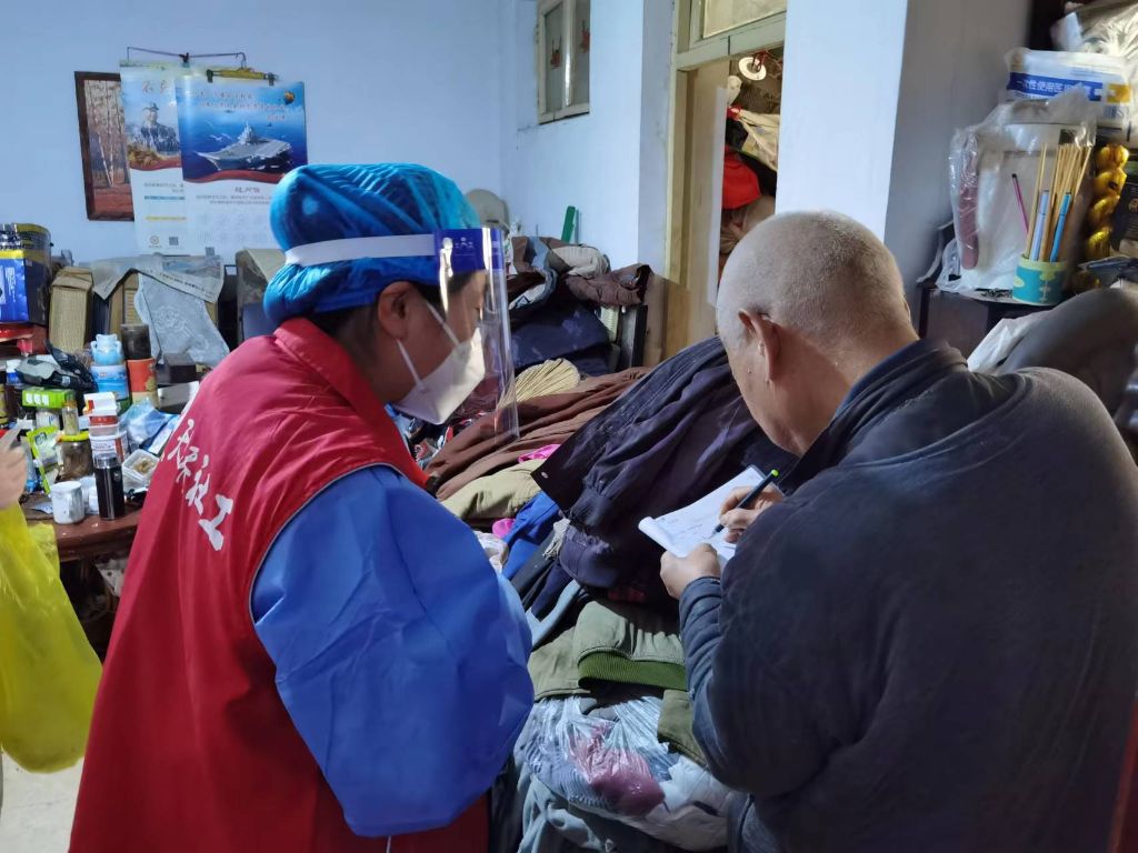 疫情当下,社工站积极发挥自身优势,充分体现服务的精神与原则,以服务有需要的人群为核心目的,满足特殊群体的基本需求,5月13日,针对辖区内特殊群体进行走访入户。此次入户,社工+医护人员共同行动,医护人员核酸检测工作、社工精神慰问工作同时开展,在医护人员进行核酸检测的同时,社工对特殊群体及其家属发放一次性医用外科口罩,同时询问其最新需求、了解最新生活状况。即使在疫情下,社工仍然注重服务对象的基本需求,为特殊群体提供助人服务。