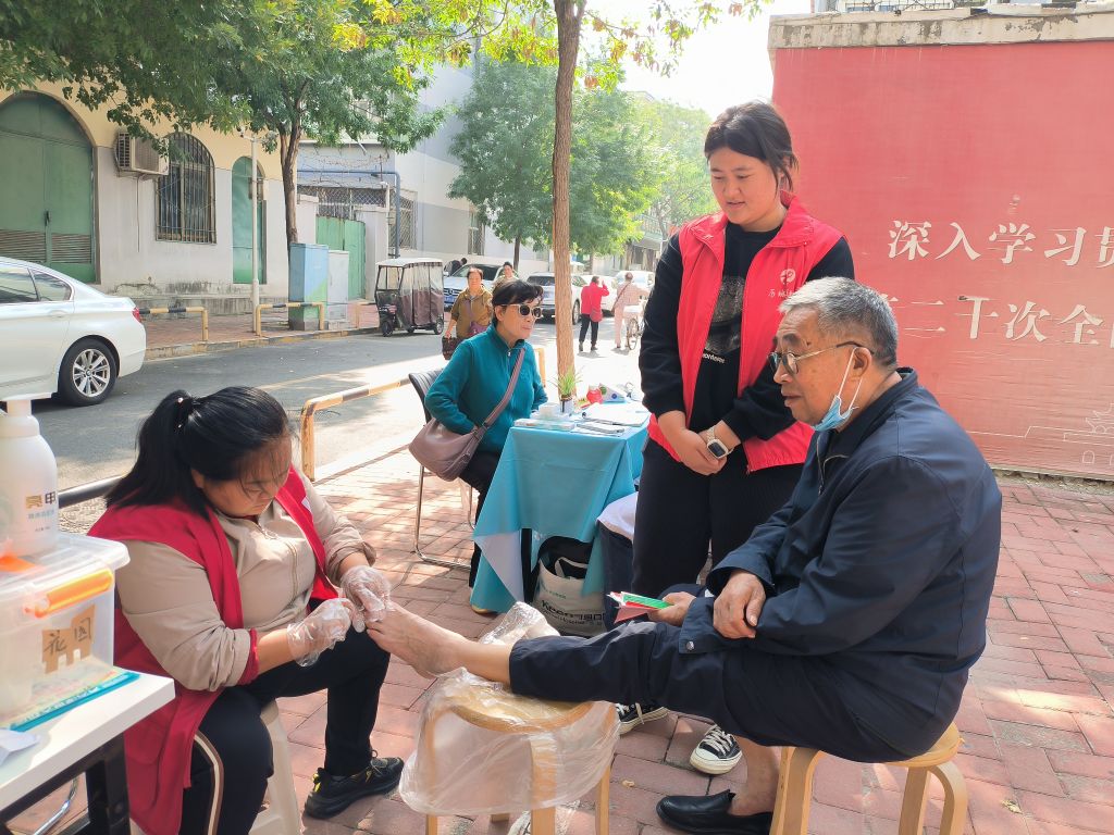 在活动现场,各个便民服务摊位前都围满了络绎不绝的人们。首先映入眼帘的是按摩区,专业的按摩师用娴熟的手法为居民缓解身体的疲劳和酸痛。在修脚区,师傅们细心地为居民修剪指甲、处理脚部问题。随后,社工引导年龄较大较大的老人来到量血压摊位前,医护人员认真地为老人们测量血压,提醒他们注意日常饮食和生活习惯。最受欢迎的当属剪发区,活动开始前就有居民排队等待了,社工依次为居民们登记发号,安排理发,在社工的协助下现场秩序一片井然。理发师们动作麻利地为居民修剪出整洁美观的发型。在检查口腔的区域,牙科医生们仔细地为居民检查口腔健康状况,提供专业的口腔护理建议。前来参加活动的居民脸上洋溢着幸福的笑容,对这次活动赞不绝口。“这些便民服务真是太贴心了,让我们感受到了社工站对我们的关爱。” 年近80岁的刘爷爷激动地说。“家门口”的便民服务获得了大家的一致好评。