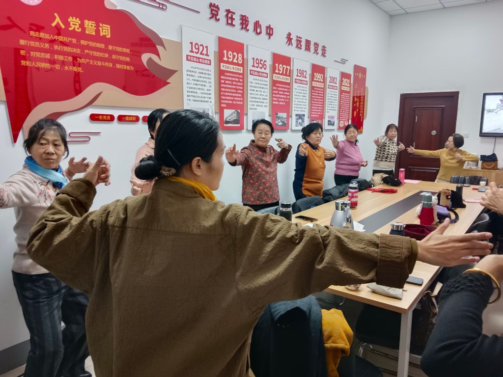 活动伊始,张老师带领老人们进行了八段锦的练习。八段锦作为中国传统健身方法之一,不仅能够增强体质,还能促进心肺功能、调节情绪。在老师的指导下,老人们认真地模仿每一个动作,现场气氛轻松愉悦。通过这一体验环节,老人们初步感受到了传统养生文化的魅力,同时也为接下来的学习做好了身体和心理上的准备。