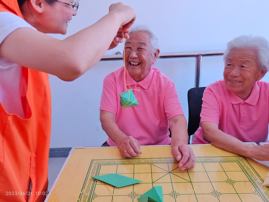 一双双灵巧的手把自己对生活的热爱全都包进了甜甜的粽子里,大家唠着家常,说着心里话,浓浓的节日气氛拉近了老人与社工的心。