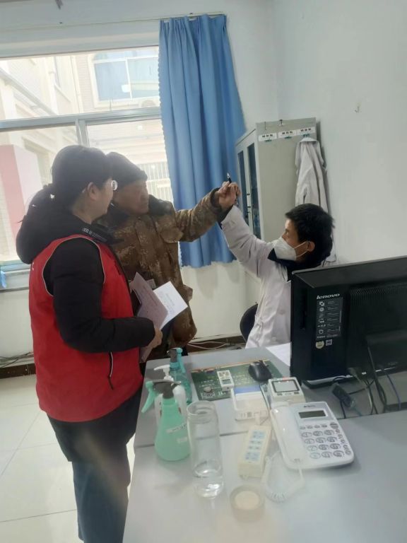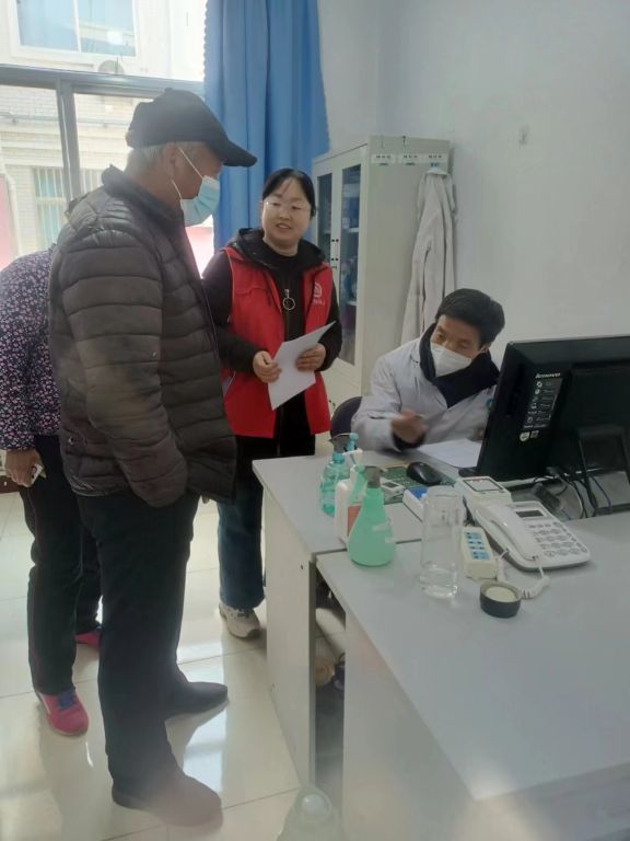 体检现场,社工首先拿着老人的体检单子去询问医务人员老人的体检项目,随后带领老人进行基本体格检查,量血压,心肺听诊、血常规、心电图、等体检项目,等结果出来后社工带领老人去询问医生体检结果,耐心倾听医生对老人的病情分析。医生根据老人的不同情况给出了实际的指导意见及预防措施,并且为检查出疾病的老人提出进一步的检查建议和治疗方案。最后,社工为老人们取好医生开好的药,并标注好每天需吃的药量,嘱咐老人在日常生活中注意自身的身体状况,尽量做到有病早发现、早预防、早治疗。