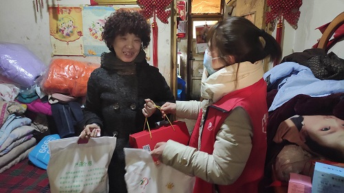 新春临近,年味渐浓,社工通过链接爱心资源,走访慰问社区内困难残疾人,与社区志愿者为其送去了米、面、鸡蛋等生活用品,并为他们送去了节日的问候,每到一户,社工与服务对象悉心交谈,详细询问他们的家庭情况、日常起居、年货置办等相关问题,并嘱咐他们天气寒冷注意保重身体。为辖区内困境残疾人送去温暖与关怀的同时,也准确的掌握了服务对象的现状和需求,可以帮其解决实际困难,切切实实做到了聚人心、暖人心,有利地促进了社区的和谐氛围。
