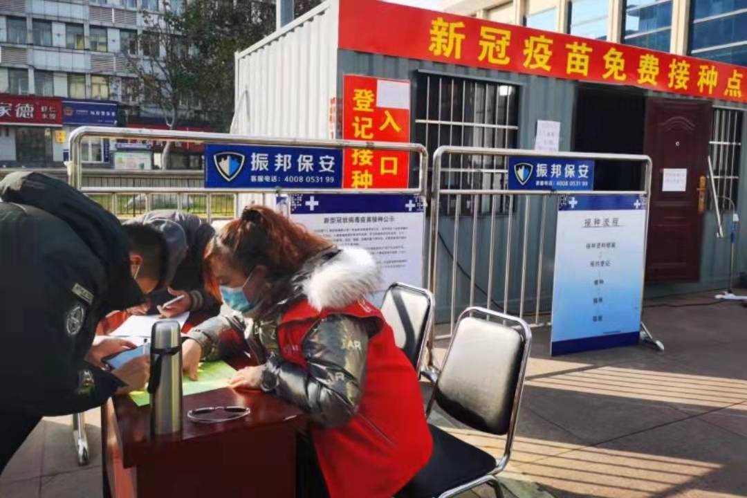 为全力遏制新型冠状病毒感染的肺炎疫情蔓延,坚决打赢疫情防控阻击战。纬北路街道社工站社工2022年1月7日上午在疫苗接种点协助街道加强针接种工作。