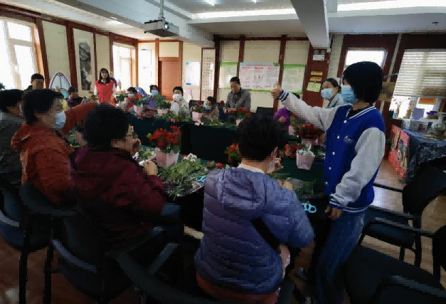 社工以文字展示和现场讲解的方式,详细介绍了本次活动的主要内容以及目的,并以祖国历史为主线串联“新与老”沟通契机。随后,手工老师向服务对象介绍花艺的基本知识和插花技巧,在老师耐心的讲解和社工引导下,一束束包含浓浓敬意的插花艺术品映入眼帘,“我很骄傲自己是祖国的儿女,一点点心意,希望国家越来越好”,残疾人代表周长岭老师,激动的用手语表达着心声,表达着对于祖国祝愿以及对于社区的归属。
