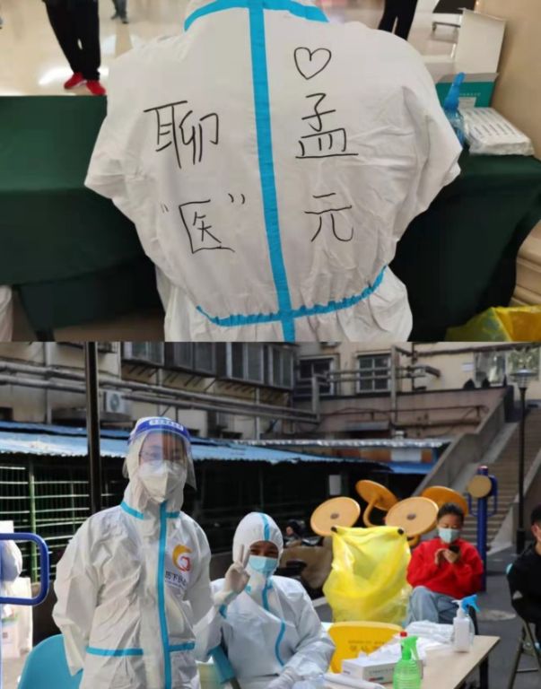 很多医务人员都因小区封控而无法陪伴自己的家人和孩子,加之每天采样压力巨大,医务人员不免会出现不良情绪的情况,社工每每看到与自己并肩作战的医务人员在朋友圈里发到“思念家人、担心孩子、难过想哭”等情况,都会第一时间为其进行疏导,给予其支持和鼓励,在平时的核酸检测工作中,社工也会与医务人员交谈一些有趣的事情,减缓她们的压力。