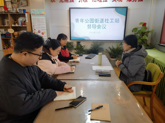 过往一年青年公园街道社工站横跨两个项目周期,在以往项目周期一定体量的服务供给的基础之上,在新项目周期青年公园街道社工站确定了精细化项目建构的实践路径,因此对于服务经验的总结与梳理是此次督导会议的重要内容,社工站社工将自身在实践过程中的疑惑、优势经验与督导老师交流互动,予以督导支持同时梳理提炼出服务经验。社工站社工向督导老师简要汇报新一年度的实践规划与重点项目内容,着力做好需求的发掘与响应以及服务的提供与发展等要求,同时督导老师对社工站提供的困境人群服务需求问卷进行完善,并对访谈技巧、评估技巧与问卷操作化技巧进行专项督导。