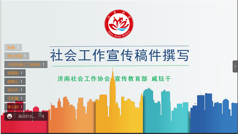 图 1 济南社会工作协会宣传教育部部长戚钰千老师进行赋能培训