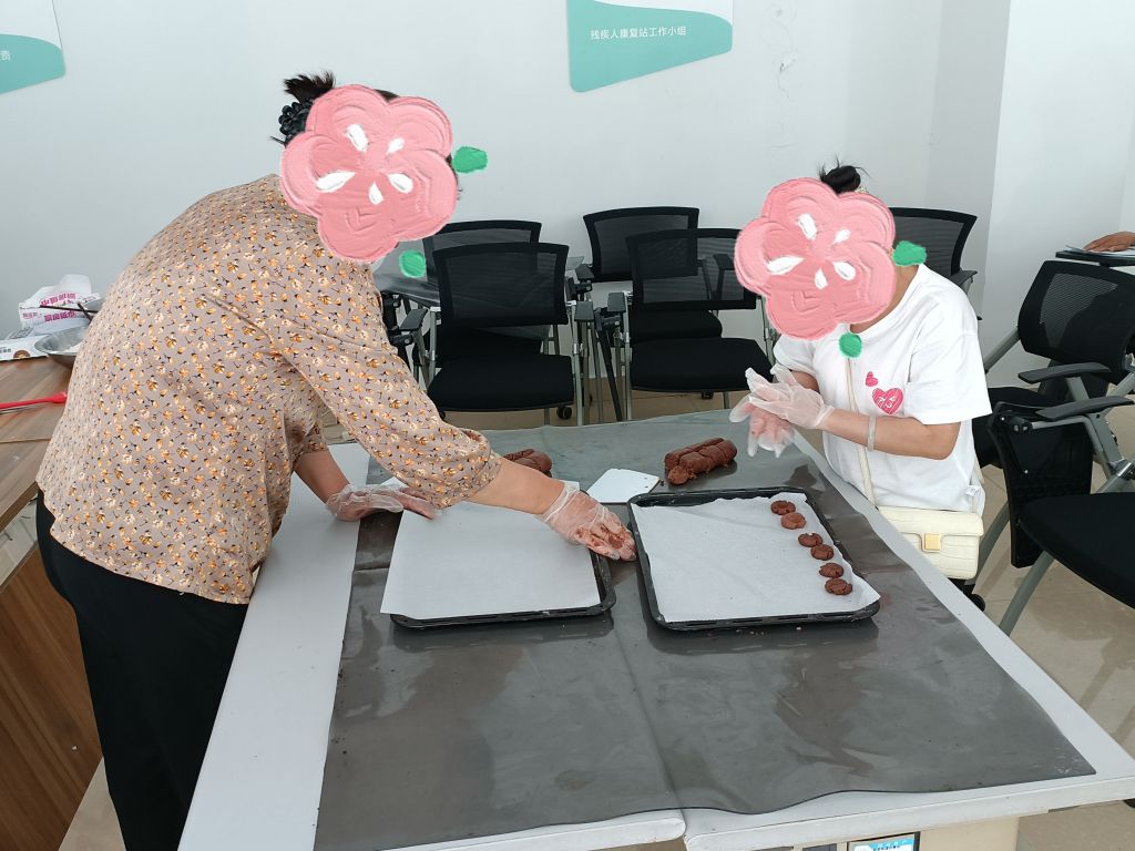 活动筹备之初,社工站充分发挥桥梁纽带作用,深入调研残疾人需求,邀请了拥有丰富教学经验与实战技巧的专业面点师傅作为主讲嘉宾。培训采用“理论筑基+实操演练”的创新模式,确保内容既专业又贴近残疾人的实际需求,力求让每一位参与者都能轻松上手,学有所获。活动当天,社工们早早地布置好现场,耐心引导每一位残疾人朋友签到入场。在理论授课环节,社工们协助讲师,用最简单直接、易于理解的语言,将复杂的面点制作原理拆解成一个个小步骤,参与者们听得津津有味,兴趣盎然。在社工和老师的双重指导下,参与者们分组合作,从称量材料、和面发酵到成型烘烤,每一步都亲自动手,体验着从无到有的创造乐趣。巧克力曲奇的香甜、麻花的酥脆、披萨的丰富层次,在大家的共同努力下逐一呈现,空气中弥漫着幸福的味道。品尝着自己亲手制作的美食,参与者们脸上洋溢着满足与自豪的笑容,李叔说:“这样的培训既实用又有趣,不仅学会了新技能,还增强了自信心和社交能力。”