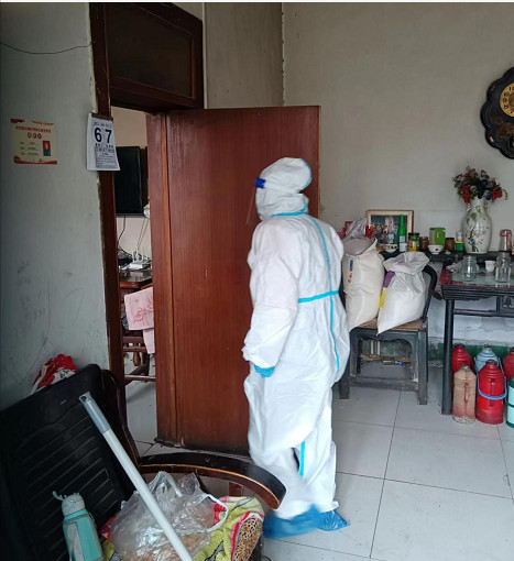 针对一些卧床、残疾、居家隔离不能出门的特殊人群,社工陪同医护人员进行入户登记采样。