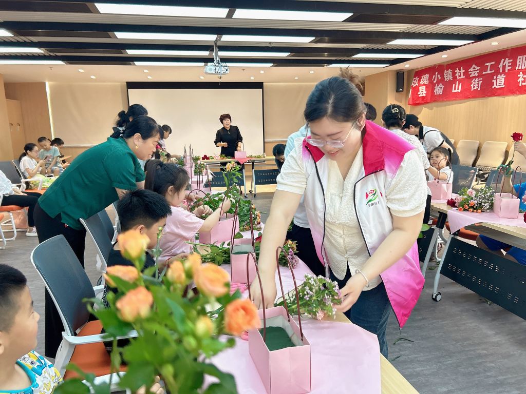 6月24日上午,榆山社工站链接玫瑰小镇社会工作服务中心,联合榆山街道社区社会组织联合会开展端午节花束DIY亲子主题活动,带领孩子和家长们领略不一样的端午节。