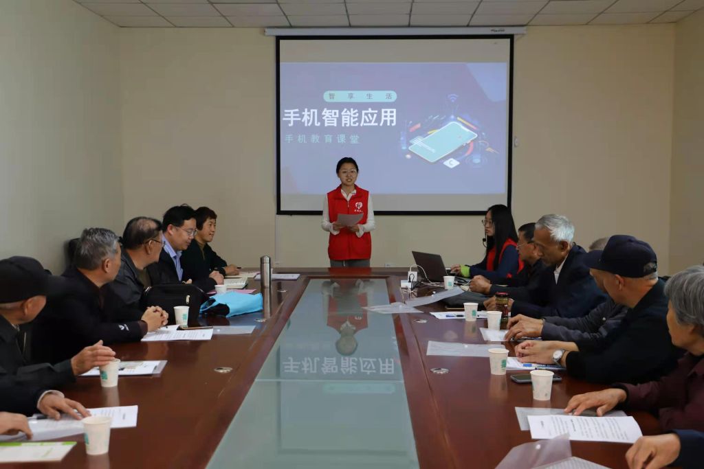 活动开始,社工为小组内的14位长者介绍了本节小组活动的学习内容和活动目的。通过社工前期对接老干部办公室对退休干部的情况了解,课程第一节的方案设计从最基础的《认识手机》开始,包括智能手机的开关机、接打电话、WIFI的设置、屏幕亮暗等环节,并对每个环节的基本功能进行了详细讲解。